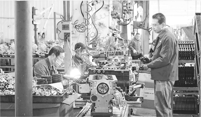 新年伊始,山东华源莱动内燃机有限公司生产车间内,各条生产线高速运转,工人们争分夺秒赶进度、精雕细琢保质量。 (本报通讯员 吕文娟 摄)