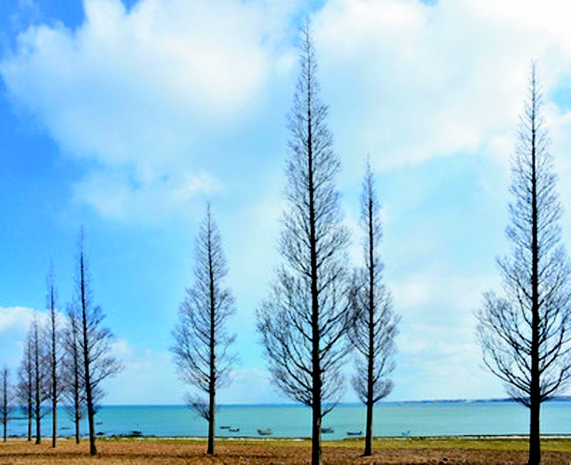 冬日的暖阳,在湖面铺开澄澈的金色。水下,鱼群曳动,划开缕缕波纹;空中偶有水鸟掠过,翅尖也沾染了融融的暖意。与友人沿湖漫步,视线不觉被远处几株秀颀的水杉牵住——它们静静立在光中,仿佛垂首凝望自己的倒影。我们便循着那斑斓的光影,一路行至湖心小岛。