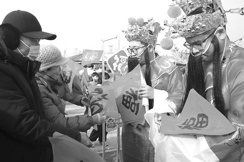2月4日,山东能源枣矿集团柴里煤矿南广场上人头攒动、锣鼓喧天,第三届“平安纳福、集享柴里”矿工大集火热启幕。“我们办大集,就是想为咱矿工兄弟和家属们打造一个身边的、热闹的、有温度的企业家园。”柴里煤矿党委书记焦太记表示。图为身着彩衣的“财神”“福娃”穿行在人群之中,向职工家属派发“福”字和小礼品。 (本报通讯员 刘光贤 贾晓晓 胡崇清 摄)