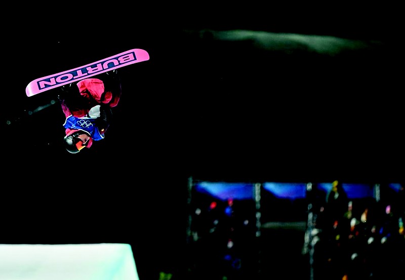 在2月11日进行的米兰冬奥会单板滑雪男子U型场地技巧 (U池)资格赛中,中国选手王梓阳凭借高转数成套动作,以第10名的排位闯入决赛。图为王梓阳在比赛中。 (新华社记者 张宏祥 摄)