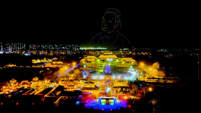 2月22日,在广饶县孙子文化旅游区,游客们正在欣赏灯光秀。春节期间,广饶县各景区的灯饰流光溢彩,庆祝活动精彩纷呈。 (本报通讯员 刘云杰 摄)
