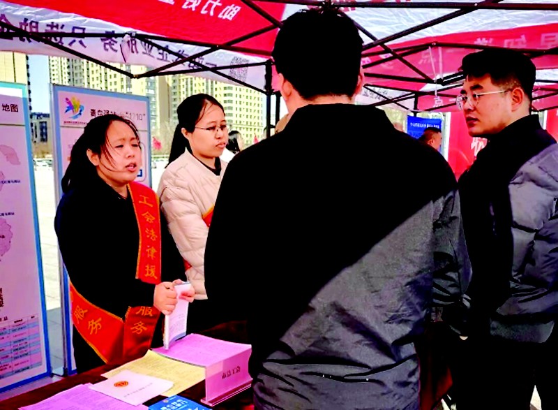 作为主办单位之一,滨州市总工会在活动现场推介 “职工之家”APP就业云平台,宣传《劳动合同法》《山东省实施<工会法>办法》等法律法规,解答劳动合同、权益保障等问题,吸引众多市民驻足咨询。 (本报通讯员 张玥群 韩志磊 摄)