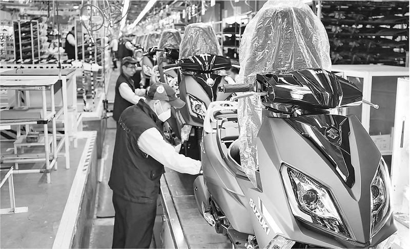 春节期间,济南不少重点项目建设“不打烊”、企业生产“不停歇”,节后复工复产更是蹄疾步稳、接续发力,奋力冲刺一季度“开门红”。目前,济南正以“拼”的精神、“实”的干劲,推动项目建设和企业生产同步提速,为城市高质量发展积蓄更强动能。图为2月24日,济南轻骑铃木摩托车有限公司各产线全部开足马力,日产量870台。 (本报通讯员 于玺 摄)