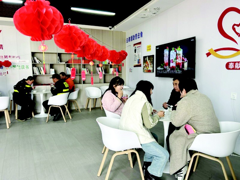 3月3日,泰安市岱岳区总工会在天颐湖花海工会驿站举办“情暖驿站·喜乐元宵”志愿服务活动。驿站内暖意融融,户外劳动者们吃上了热气腾腾的汤圆。