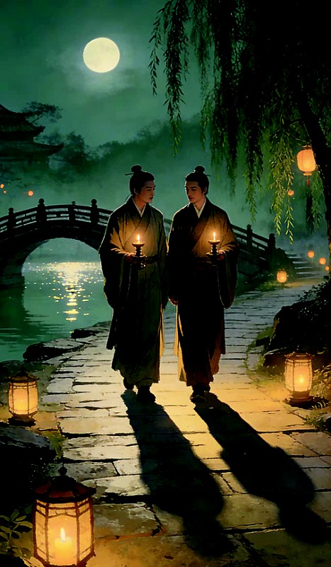 车马迟缓、音信难通的古代,思念便化作踏夜而行的勇气。秉烛寻友,不惧夜深山远,不畏风露沾衣,一支烛光,便是前行的方向与温暖。贾岛的《题李凝幽居》,背后便是一场深夜寻友:“闲居少邻并,草径入荒园。鸟宿池边树,僧敲月下门。”月色如霜,他秉烛而行,寻访友人李凝。幽居静谧,他轻叩柴门,一字一句反复斟酌,留下“推敲”佳话。这轻柔一敲,是对友人的敬重,也是对相约之期的赤诚。烛光点亮小径,也照亮古人重情重义的心。