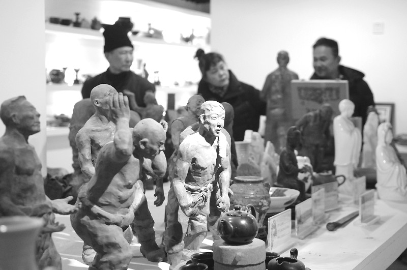 3月6日,市民正在淄博陶瓷雕塑博物馆观赏。