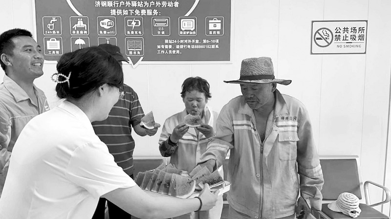 而那座由工会设立常年开放的 “户外劳动者爱心驿站”,更是将温暖固化成城市的一个坐标。盛夏,它为环卫工人、快递小哥送去西瓜与清凉;严冬,它提供热水与短暂的温暖。送餐途中的骑手王师傅说:“这里有地方躲雨歇脚,像个小家。”环卫工李阿姨吃着西瓜,笑容朴实:“能在这儿歇歇,心里很暖。”