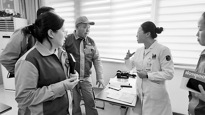 连日来,日照市总工会联合日照心脏病医院等爱心单位持续开展“心系职工 健康相伴”健康讲座志愿服务活动,先后走进日照电信、青岛啤酒日照公司、日照检验等企业,把专业的健康诊疗服务和科普知识送到职工身边。图为3月17日,医护专家在青岛啤酒日照公司为职工提供义诊咨询服务。 (本报通讯员 张颖 摄)
