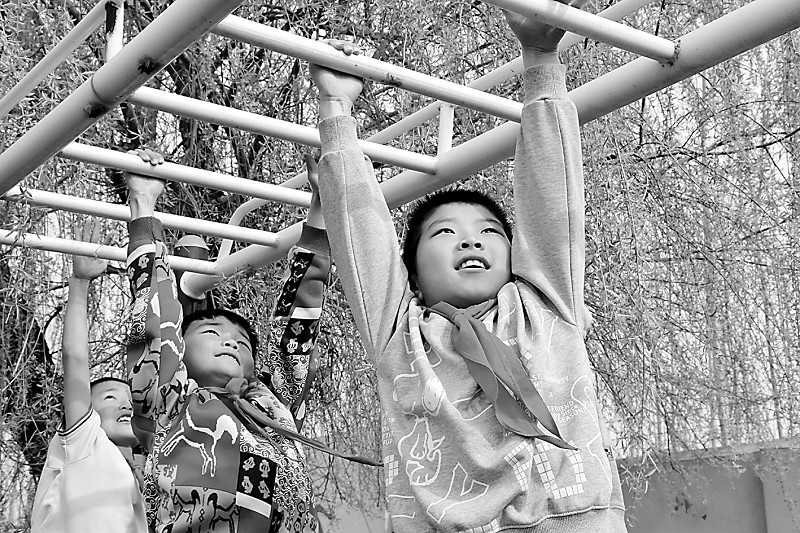3月26日,高青县唐坊学区和店小学学生在练习过云梯。