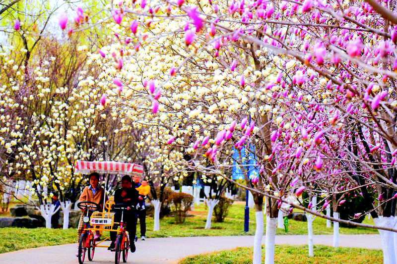 春归万物生,玉兰争香艳。3月26日,济南市植物园内3000株玉兰花竞相怒放,满树繁花的震撼景象,吸引了众多游客驻足观赏。 (本报记者 洪波 本报通讯员 吴群 摄)
