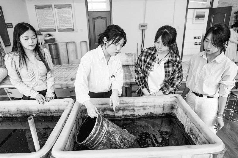 4月7日,在山东轻工非遗学院,学生们正在潜心研习周村丝绸植物染色技艺,将传统智慧与现代审美相结合。