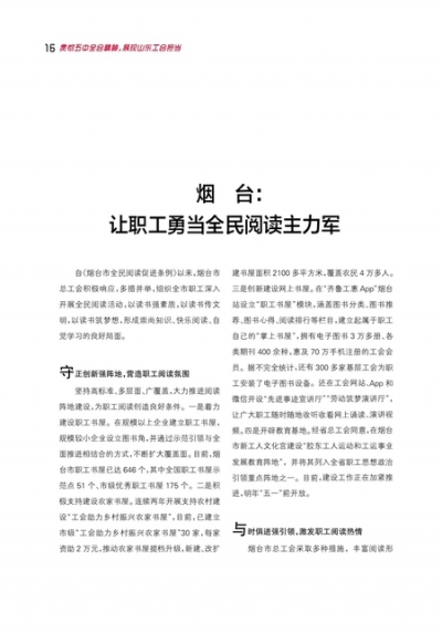 烟 台:让职工勇当全民阅读主力军