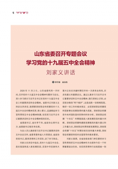 山东省委召开专题会议学习党的十九届五中全会精神