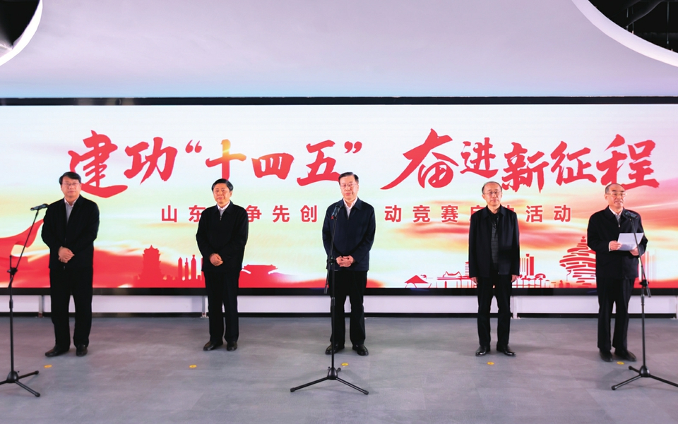 省总工会党组书记、常务副主席刘贵堂主持活动并进行竞赛动员。他指出,开展全省“建功‘十四五’奋进新征程”争先创优劳动竞赛,是贯彻落实习近平总书记对山东工作的重要指示要求,围绕实现省委“七个走在前列”“九个强省突破”奋斗目标,动员全省广大职工群众比学赶超、建功立业,为全面开创新时代现代化强省建设新局面汇聚磅礴力量、做出更大贡献。刘贵堂强调,今年是“十四五”开局之年,圆满完成今年重点任务,意义重大、使命光荣。全省各级工会组织要以这次启动活动为契机,组织动员广大职工进一步焕发劳动热情、释放创新活力,积极投身强省建设主战场,奋力跑出迈向前列的“加速度”。各参与部门、单位要加强组织领导,精心组织实施,确保劳动竞赛扎扎实实、热火朝天、硕果累累。广大职工群众要大力弘扬劳模精神、劳动精神、工匠精神,在竞赛活动中赛出真本事、赛出高水平、赛出新纪录,为新时代现代化强省建设书写华彩篇章。