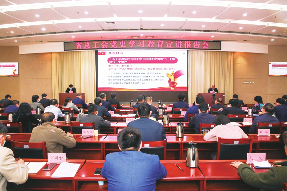 各级工会举办的宣讲活动也竞相登场。4月8日,济南市总工会依托工会大讲堂举办了党史学习教育首场报告会。济南市委常委,市总工会党组书记、主席王京文以《从三大战役的胜利感悟中国共产党为什么“能”》为题,为全市工会系统职工讲党课,引导全体党员干部认真学习、深入思考、锤炼党性,推进党史学习教育往深里走,往实里走,往心里走。东营市总工会在市工人文化宫举办全市工会系统党史学习教育专题报告会,邀请全国人大代表、全国劳模张金海讲党史、谈体会,激发干部职工的责任感和使命感。
