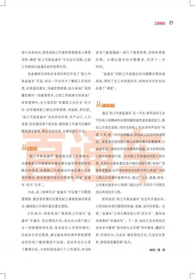 这儿的“职工代表直通车”成了给职工办事的“利器”