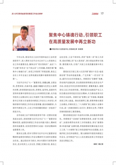 聚焦中心铸魂行动,引领职工在高质量发展中再立新功