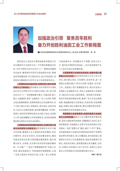 加强政治引领 聚焦百年胜利奋力开创胜利油田工会工作新局面
