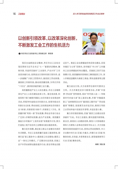以创新引领改革,以改革深化创新,不断激发工会工作的生机活力