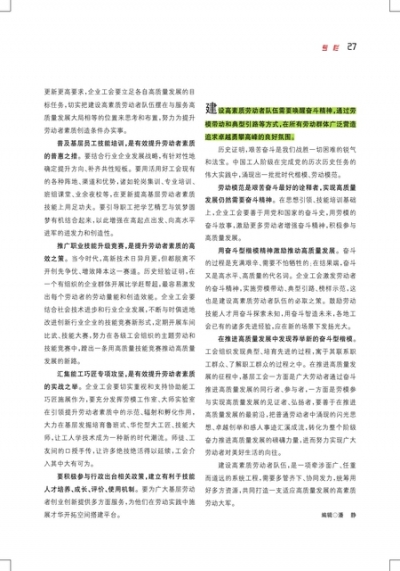 建设高素质劳动者队伍,服务高质量发展大局