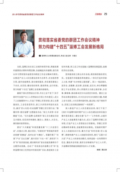 贯彻落实省委党的群团工作会议精神努力构建“十四五”淄博工会发展新格局