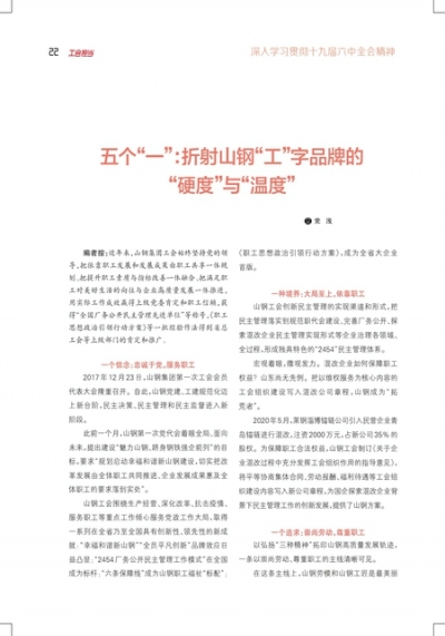 五个“一”:折射山钢“工”字品牌的“硬度”与“温度”