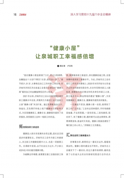 “ 健康小屋 ”让泉城职工幸福感倍增