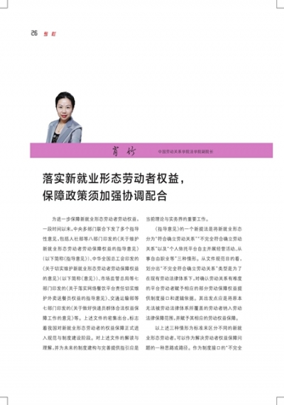 落实新就业形态劳动者权益,保障政策须加强协调配合