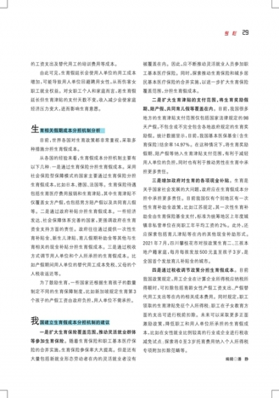 建立生育假成本分担机制维护女职工就业权益