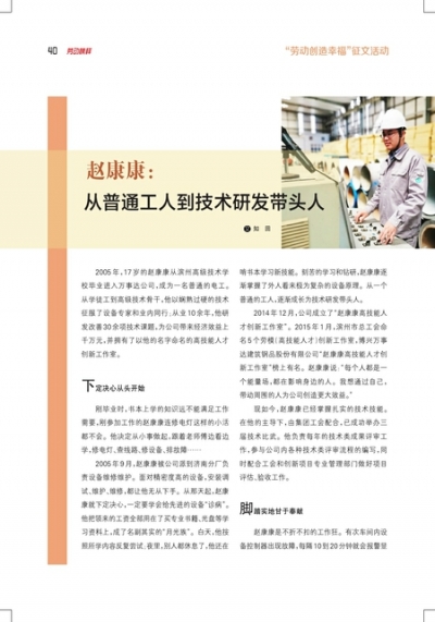 赵康康:从普通工人到技术研发带头人