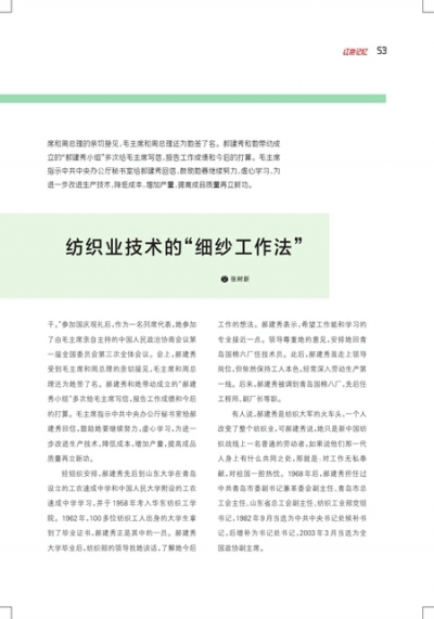 郝建秀:16 岁摸索出改进纺织业技术的“细纱工作法”