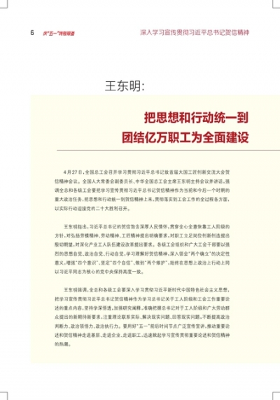 王东明:把思想和行动统一到习近平总书记贺信精神上来 团结亿万职工为全面建设社会主义现代化国家而奋斗