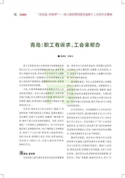 青岛:职工有诉求,工会来帮办
