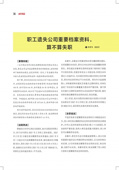 职工遗失公司重要档案资料,算不算失职