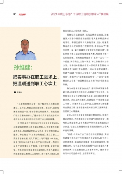 孙维健:把实事办在职工需求上,把温暖送到职工心坎上