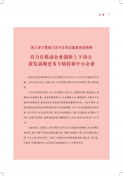 着力在推动企业创新上下功夫激发涌现更多专精特新中小企业