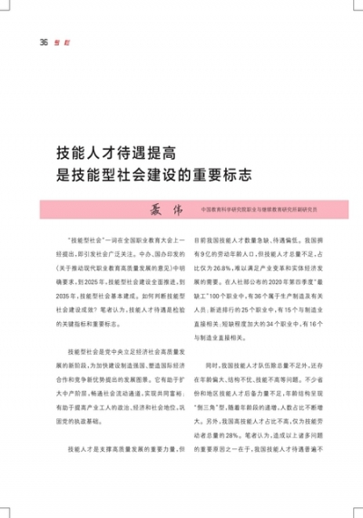 技能人才待遇提高是技能型社会建设的重要标志