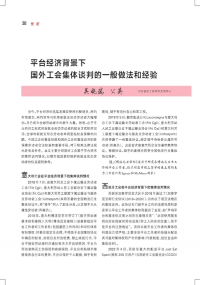 平台经济背景下国外工会集体谈判的一般做法和经验