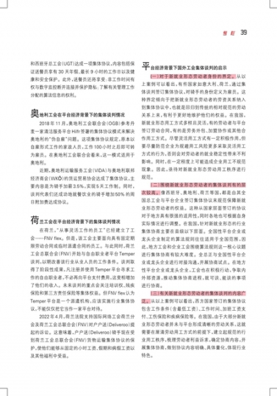 平台经济背景下国外工会集体谈判的一般做法和经验