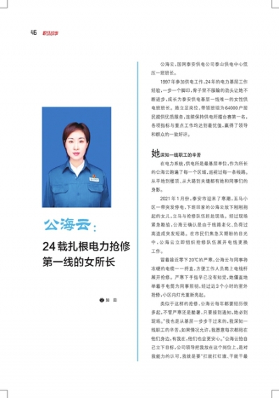 公海云:24载扎根电力抢修第一线的女所长