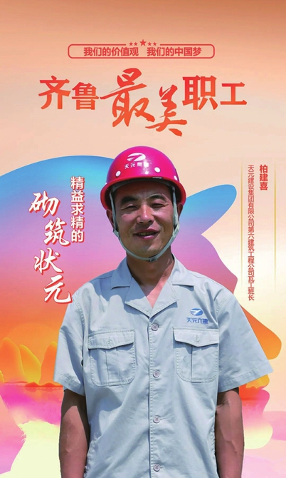 2021年10月,他代表山东省参加了第七届全国职工职业技能大赛,并最终以多个评分项0毫米的误差一举夺冠,为山东省代表队赢得了参加本次比赛唯一一枚冠军奖牌,成为我省第一个国家一类职业技能大赛“状元”。2022年,他荣获“全国五一劳动奖章”,获评“齐鲁最美职工”,他就是柏建喜,天元建设集团有限公司第六建筑工程公司瓦工班长。