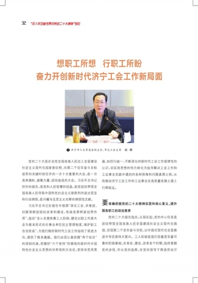 想职工所想 行职工所盼 奋力开创新时代济宁工会工作新局面