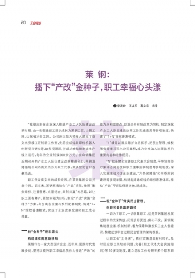 莱 钢:播下“产改”金种子,职工幸福心头漾