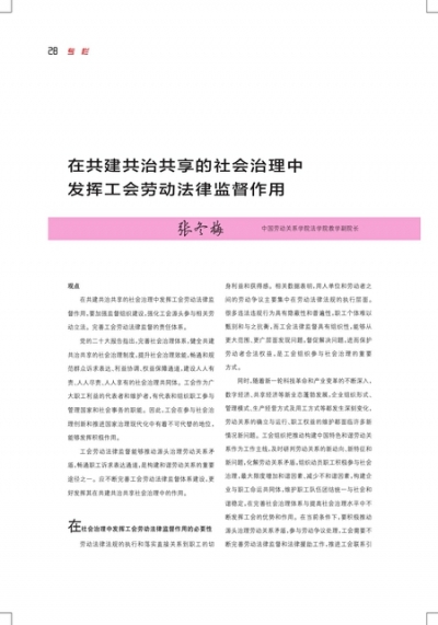 在共建共治共享的社会治理中发挥工会劳动法律监督作用