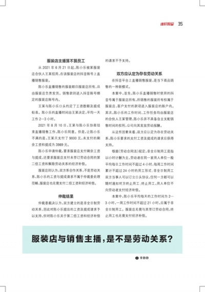 服装店与销售主播,是不是劳动关系?