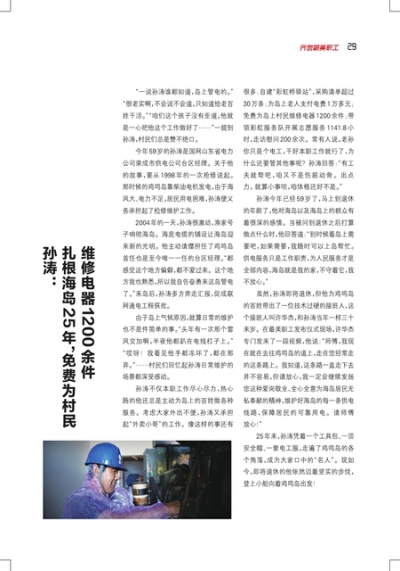 孙涛:扎根海岛25年,免费为村民维修电器1200余件