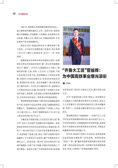 “齐鲁大工匠”管益辉:为中国高铁事业增光添彩