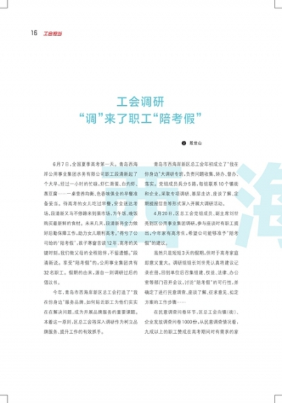工会调研“调”来了职工“陪考假”