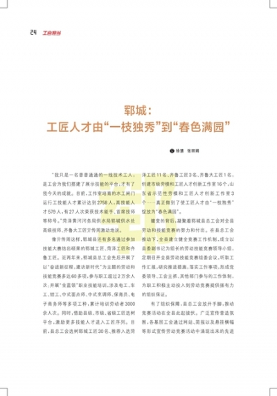 郓城:工匠人才由“一枝独秀”到“春色满园”