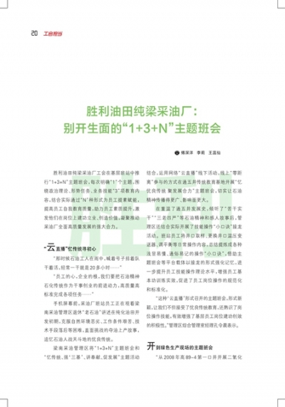 胜利油田纯梁采油厂:别开生面的“1+3+N”主题班会